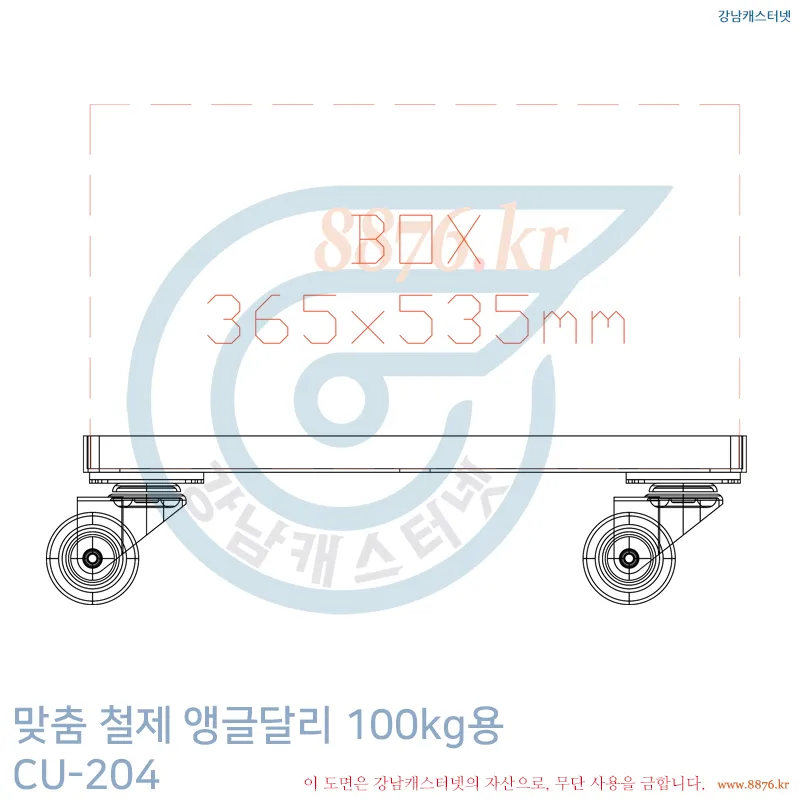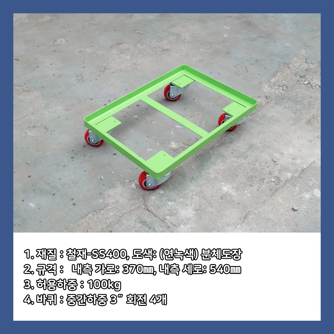 주문 제작에 속하는 제품이므로 원하시는 규격대로 제작이 가능하며, 보통 규격화된 박스를 적재, 이동하는 용도로 사용되므로 내측 규격이 중요합니다.