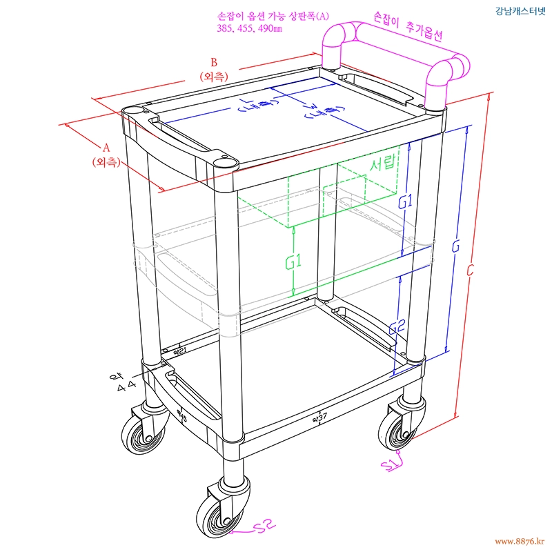 공구 하나 없이 맨손으로 조립 가능한 카트입니다.